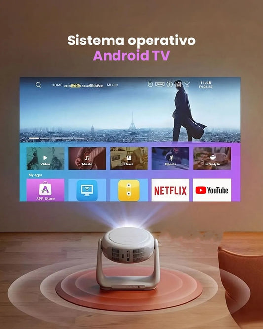 Proyector Portátil Recargable– Android TV, WiFi 6, Bluetooth 5.2 y enfoque automático