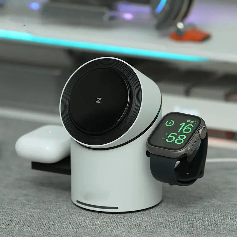 Estación de carga inalámbrica magnética cilíndrica 3 en 1