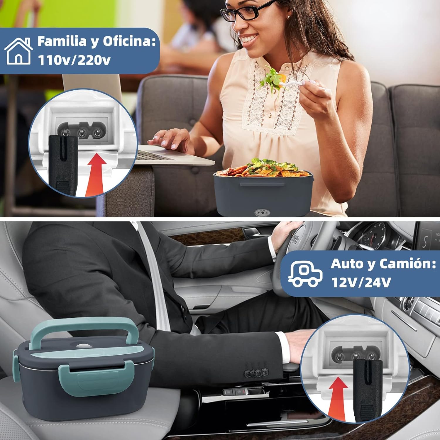 Esta lonchera no es un contenedor. Es tu cocina portátil. Con doble voltaje, recipiente de acero inoxidable y tapa con sellado mejorado, convierte cualquier lugar en tu comedor personal. Ya sea en la oficina, el auto o el camión, tú decides cuándo y dónde comer bien.