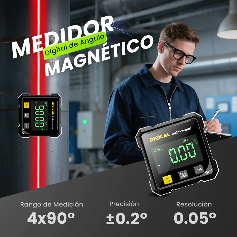 Medidor de ángulo digital magnético de 4 caras con láser